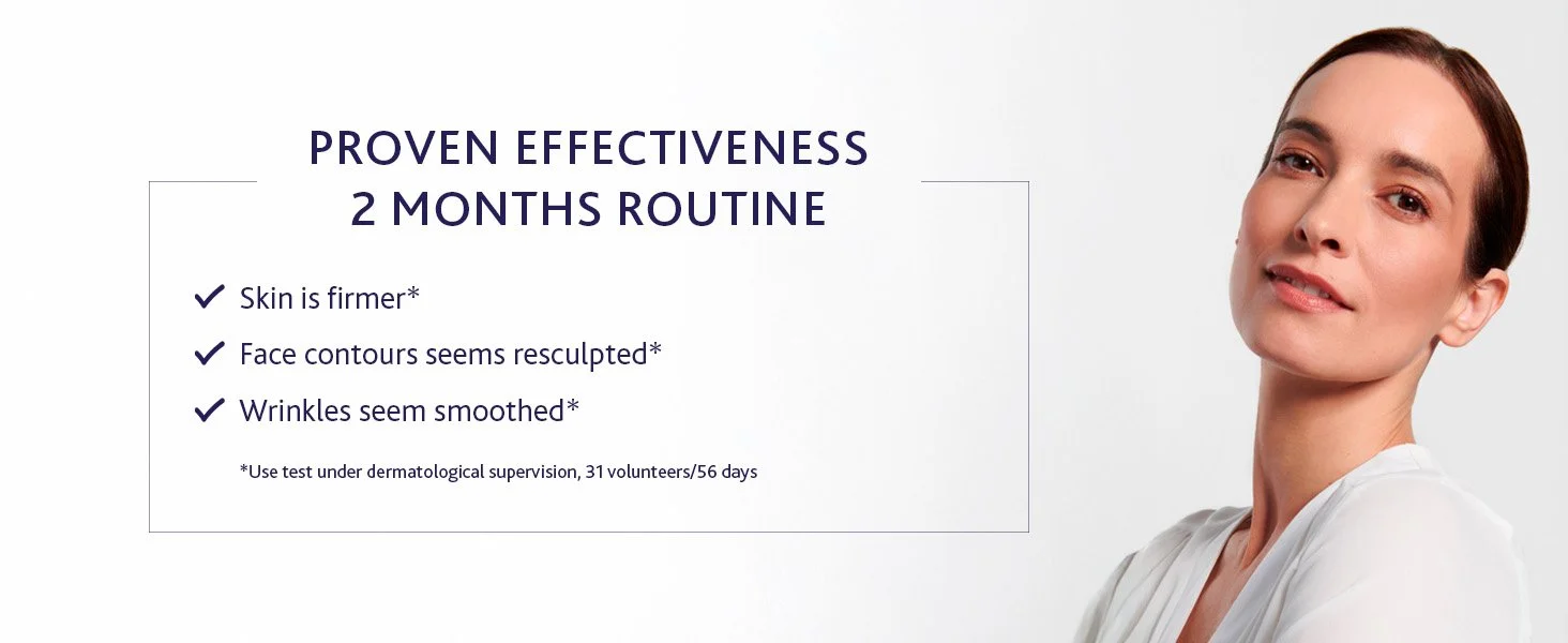 Firms and smooths skin, enhances elasticity, and lifts facial contours for a more sculpted, youthful look