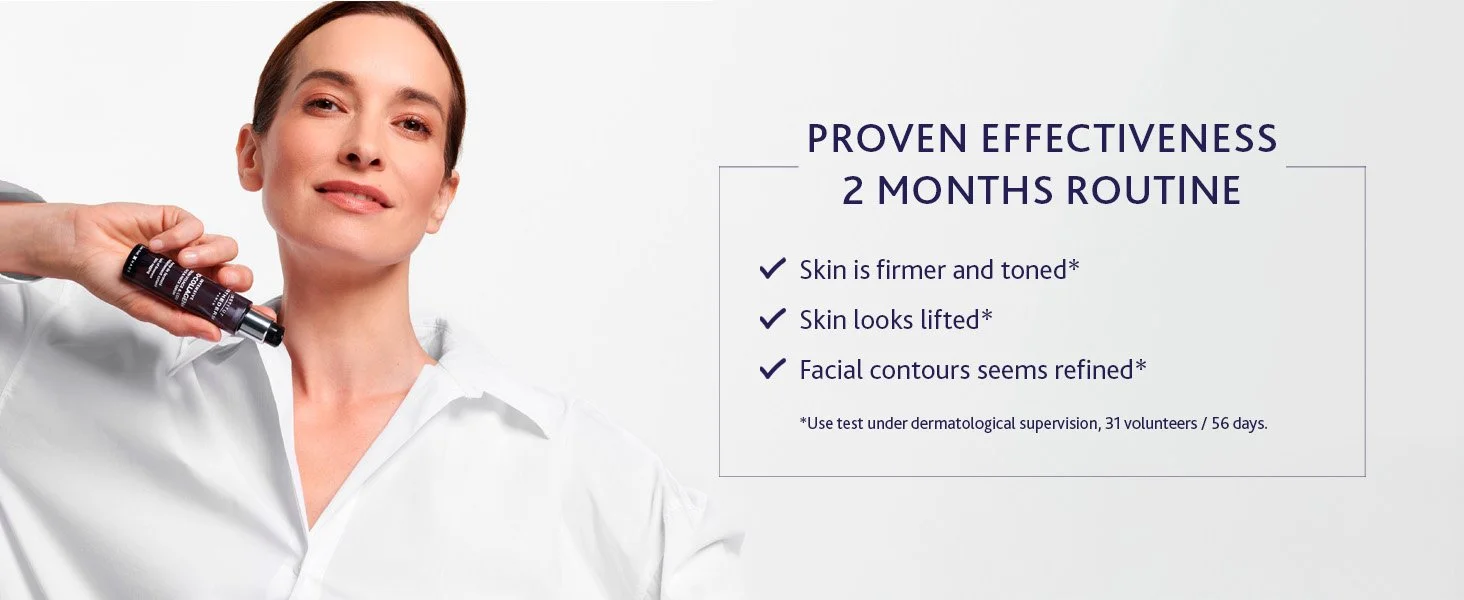 Firms, smooths, and tones skin. Visibly lifts and reshapes facial contours for a more defined, youthful look.